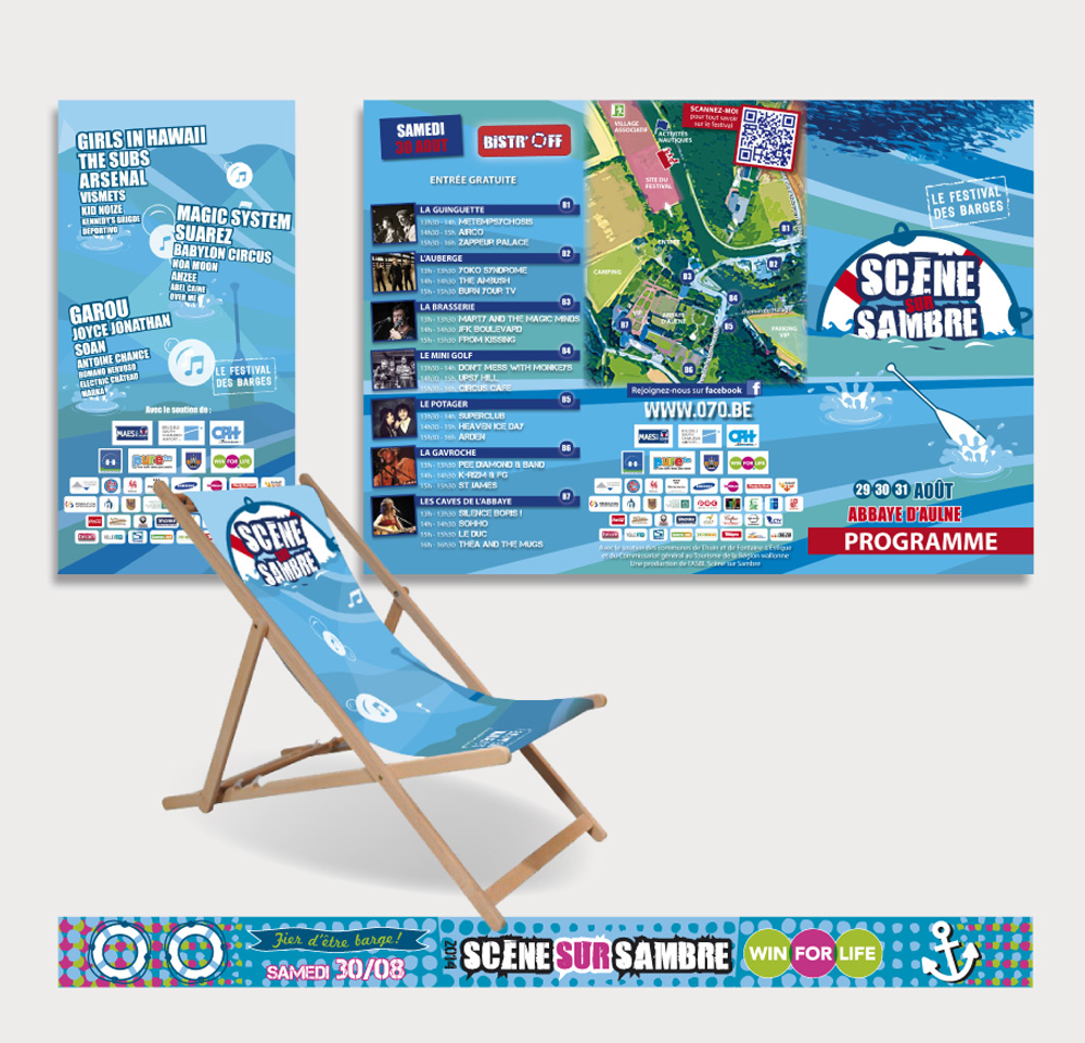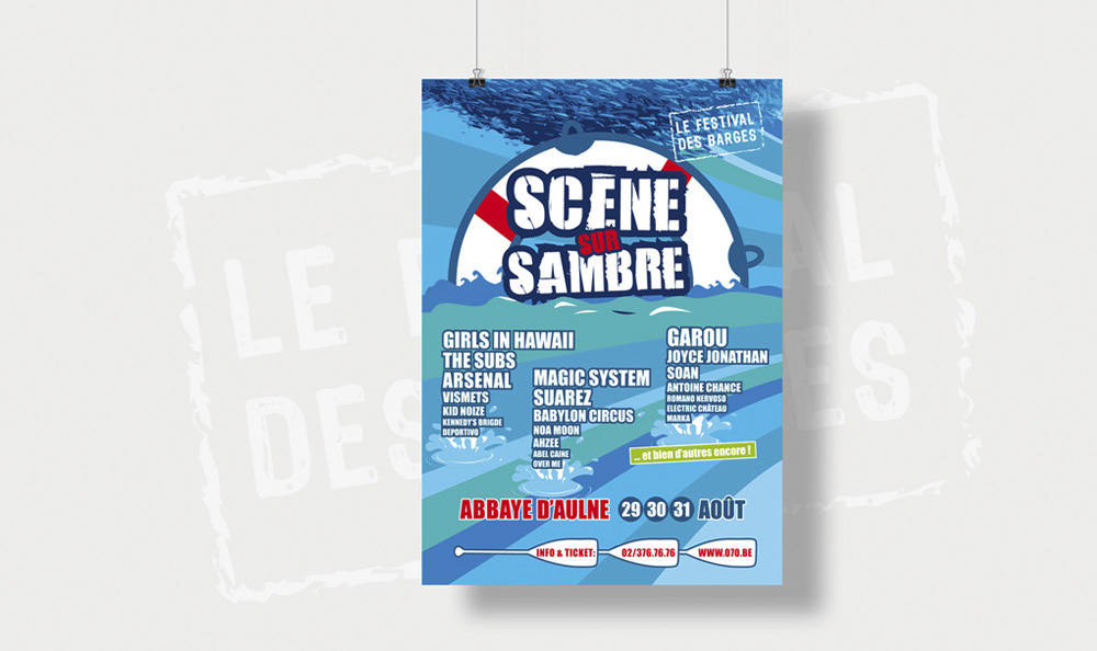 FESTIVALSCÈNE SUR SAMBREAFFICHE - ÉDITION Communication graphique globale du festival.Affiches, flyers, illustrations, bracelets, t-shirts...